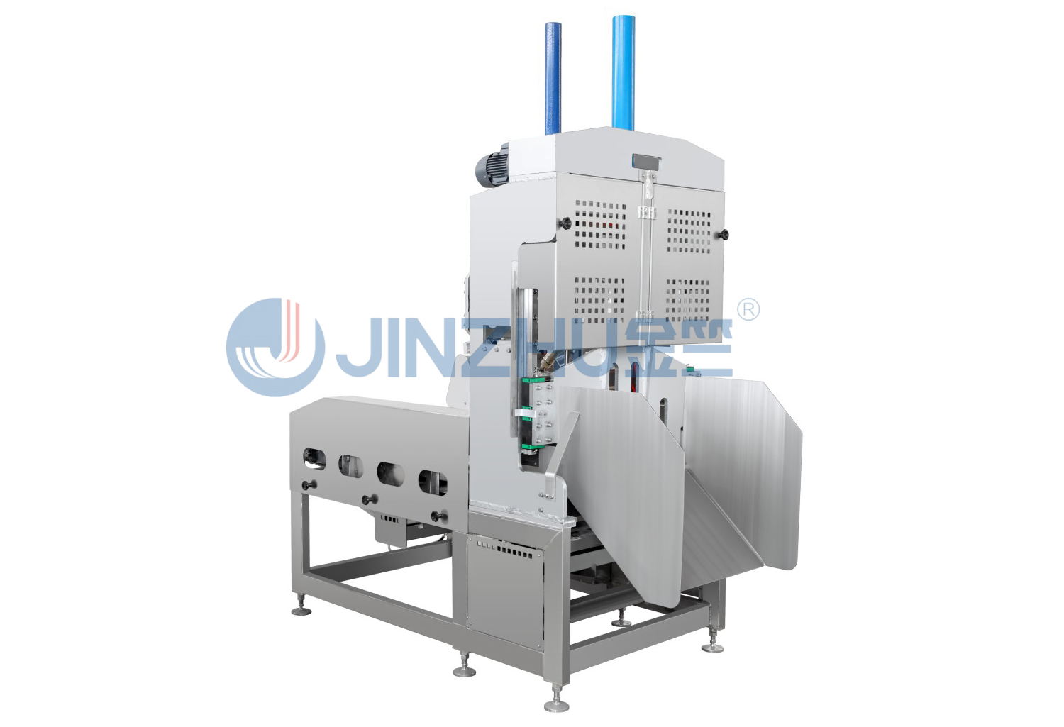 用特制的輸送帶,伺服驅(qū)動連續(xù)作業(yè),自動適應(yīng)進(jìn)料量;壓料機構(gòu)采用自適應(yīng)壓料,油缸壓力、速度可調(diào)節(jié)。